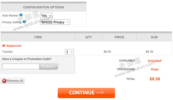 所以,我準備采用轉(zhuǎn)出的方式續(xù)約,轉(zhuǎn)出到Namesilo商家只需要9.99美元,而且還贈送隱私保護,覺得還是比較好的,而且以前我記得有轉(zhuǎn)出過一次,可以很快速的轉(zhuǎn)出,兩方確認郵件確認之后,大約一小時就可以轉(zhuǎn)出成功,那就開始吧。