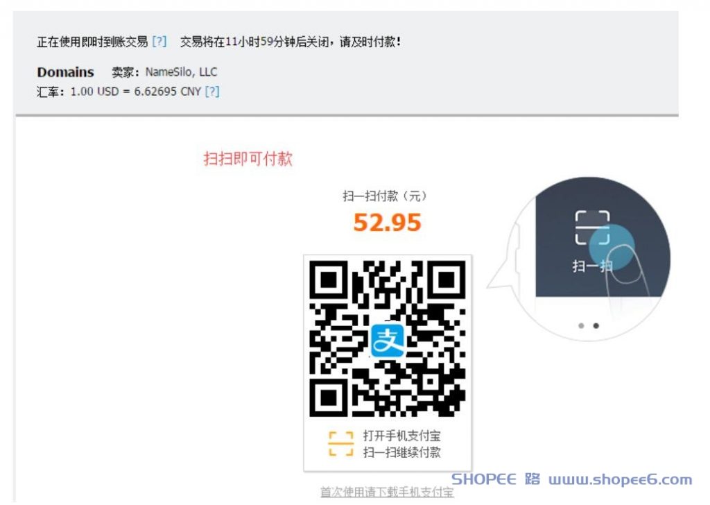 7、跳轉(zhuǎn)到支付寶結(jié)賬界面,用手機(jī)掃碼即可。