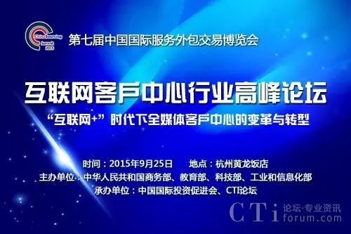 此次,服博會(huì)主辦方委托CTI論壇承辦的“互聯(lián)網(wǎng)客戶中心行業(yè)高峰論壇”也將于9月25日在杭州黃龍飯店(三層)鉆石宮隆重召開。環(huán)信移動(dòng)客服作為“互聯(lián)網(wǎng)+”時(shí)代的智能云客服領(lǐng)航者唯一受邀將參加本次盛會(huì)。