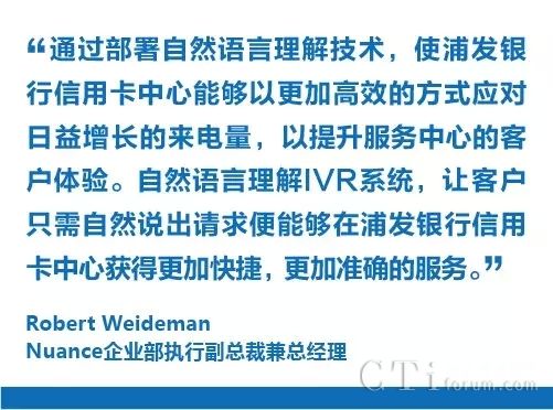 2014年江蘇移動(dòng)成功試點(diǎn)了Nuance的語(yǔ)音和自然語(yǔ)言理解(NLU)技術(shù),大大提升了需要服務(wù)或支援的來電客戶的通話體驗(yàn)。與合作伙伴華為一起,Nuance為江蘇移動(dòng)打造了更自然和直觀的客戶體驗(yàn),將此前的電話按鍵菜單目錄替換為會(huì)話式語(yǔ)言界面,從而為客戶節(jié)省時(shí)間及提高通話轉(zhuǎn)接的準(zhǔn)確性。無論他們的需求是什么,江蘇移動(dòng)的客戶輕松的通過自然說話便可以獲得方便快捷的幫助。