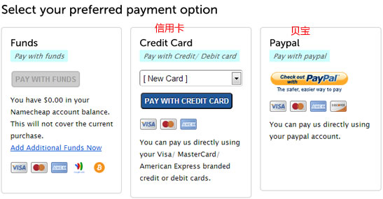 最后,付款的時(shí)候我們可以用信用卡或者貝寶付款。付款之后在域名列表中會(huì)有看到購(gòu)買的域名。