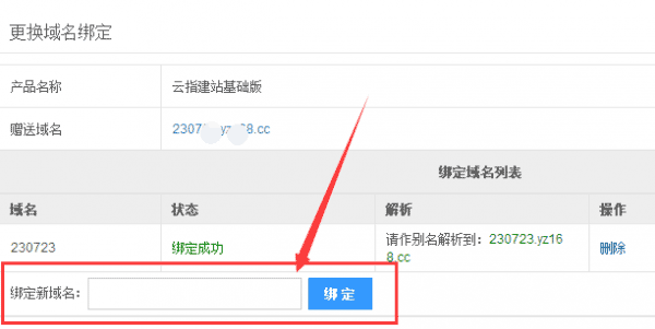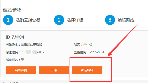 搭建好自己的網(wǎng)站后,返回到自己的用戶中心建站管理頁面,點(diǎn)擊“綁定域名”,綁定自己的域名,然后登錄自己的域名管理后臺(tái)將自己的域名解析到網(wǎng)站空間IP上。