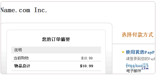 3、最后使用Paypal支付10.99美元就可以得到一年的.COM域名+一年的Whois保護服務(wù)了。