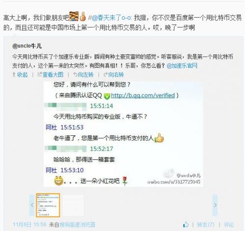 就在所有人質疑是否比特幣在中國市場只是曇花一現的時候,從百度加速樂官方了解到該公司終于接收到第一筆用比特幣購買“百度加速樂專業(yè)版”服務的訂單。從近段時間已經被披露的百度加速樂比特幣賬戶上來看,除開前期比特幣投資者的匿名捐贈之外,確實多了1BTC的收入,這一點在百度加速樂官網也有相關信息。