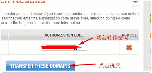 4、接著填寫你的域名的轉(zhuǎn)移授權(quán)碼。