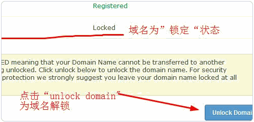 4、域名解鎖成功后,就可以看到域名的狀態(tài)是 Unlocked 。 (點擊放大)
