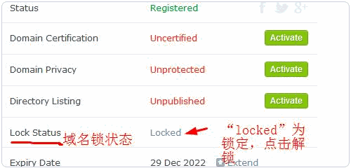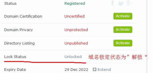 2、Crazydomains域名轉(zhuǎn)出前需要對域名進行解鎖,域名解鎖,查看你的域名的狀態(tài)是不是Unlocked。