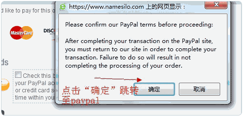 6、登陸或注冊Namesilo的賬戶,付款(付款方式包括信用卡,Namesilo傭金,比特幣,paypal等,注意paypal支付賬戶如沒有美元,請不要打鉤哪個選項)