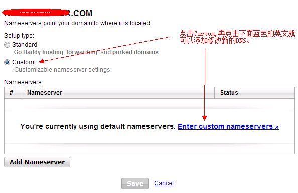 4:完成這一步之后你在godaddy.com的工作就已經(jīng)完成了,之后提到你所改的DNS那解析你的域名了。