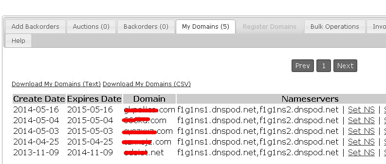 1:登錄進(jìn)去后點(diǎn)擊My Domain 可以查看域名和單個(gè)的設(shè)置DNS,設(shè)置DNS點(diǎn)擊Set NS。
