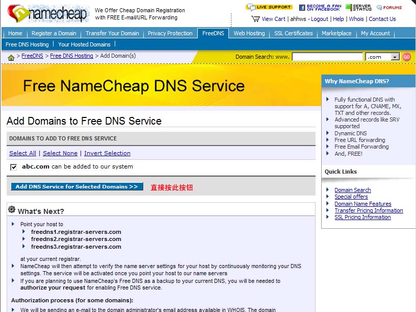 步驟14:如果你一定要看這一步的話,請返回:步驟3。 哦,先別急,差點忘了:你要將你域名的DNS設置成:freedns1.registrar-servers.com,freedns2.registrar-servers.com,如果愿意,還可以加第3個,不用我再寫出來了吧? 另外,這里的其他解析服務也是很棒的說!