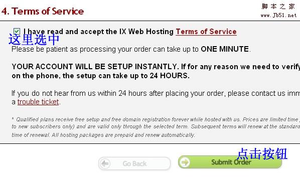 選擇同意服務(wù)條款,點(diǎn)擊“Submit Order”按鈕