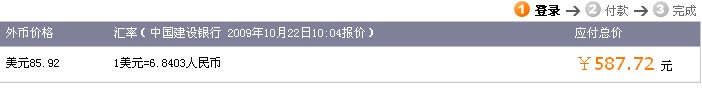 新頁面中,可以看到折合成人民幣后的價(jià)格,匯率是按照中國(guó)建設(shè)銀行的報(bào)價(jià)