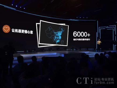 發(fā)布會(huì)上,云問與嘉賓一起分享了云服務(wù)平臺(tái)用戶數(shù)突破6000家的好消息。其中,一張交互數(shù)據(jù)地理位置圖記錄了云問機(jī)器人云服務(wù)在全國各地的客戶群,亮閃閃的圖標(biāo)展示了云問客服機(jī)器人幫助用戶在全國各個(gè)角落服務(wù)著海量的業(yè)務(wù)咨詢,據(jù)統(tǒng)計(jì)至少相當(dāng)于在全國貢獻(xiàn)了20000個(gè)客服坐席。