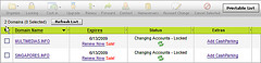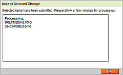 同時(shí),在你的賬戶中相關(guān)的域名也會(huì)顯示域名過(guò)戶的狀態(tài) "Changing Accounts" 。此時(shí),你將不能對(duì)域名進(jìn)行任何修改和操作,直到域名轉(zhuǎn)到對(duì)方賬戶。