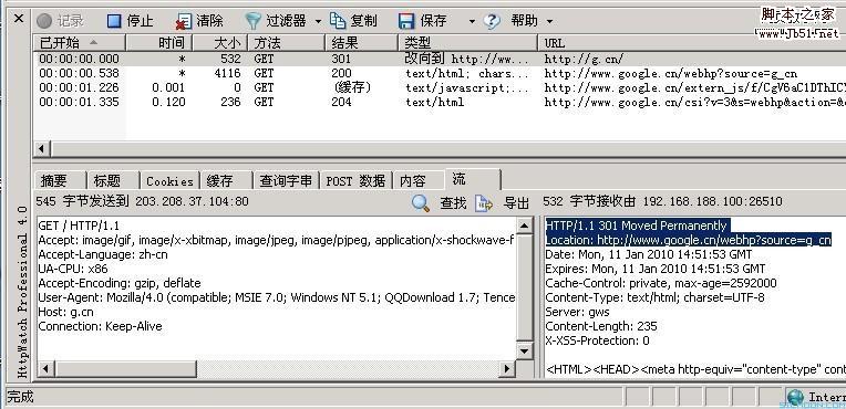| 以下是代碼片段: HTTP/1.1 301 Moved Permanently Cache-Control: private, max-age=2592000 Content-Length: 235 Content-Type: text/html; charset=UTF-8 Date: Mon, 11 Jan 2010 13:58:44 GMT Expires: Mon, 11 Jan 2010 13:58:44 GMT Location: http://www.google.cn/webhp?source=g_cn Server: gws X-XSS-Protection: 0 |