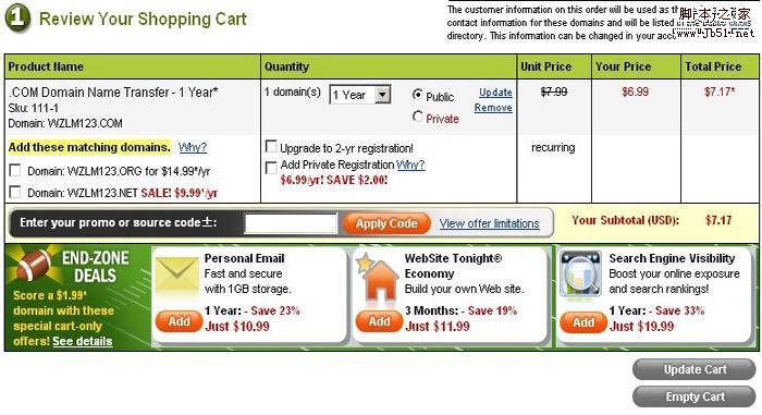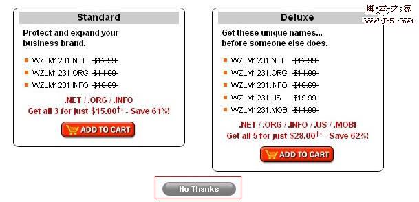 5、選擇是否定制購物車,其實就是godaddy推銷它的一些服務(wù),點擊“No thanks”
