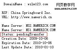 我的域名提交轉(zhuǎn)移后,5天前查詢域名WHOIS狀態(tài):PendingTransfer(正在處理中) 原注冊商是namerich: