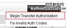 10、授權(quán)轉(zhuǎn)移。勾選你需要轉(zhuǎn)移的域名的前面的復(fù)選框,然后單擊“Authorization”(授權(quán))菜單下的“Begin Transfer Authorization”項。