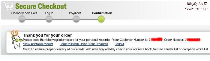 8、接受確認郵件。付款后,godaddy 會給域名所有者的郵箱發(fā)一封電子郵件,郵件告知域名轉(zhuǎn)移的Transaction ID和Security Code。注意了,GD是把郵件發(fā)到域名WHOIS中的郵箱,不是注冊GD會員填寫的郵箱。