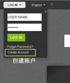 在LOG IN后面下拉箭頭處有下拉,如果我們有賬戶(hù)的話直接登陸,如果沒(méi)有就點(diǎn)擊”Create Account”文字鏈接注冊(cè)新賬戶(hù)。
