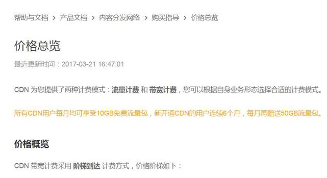 騰訊云CDN的服務(wù)費(fèi)用比較實(shí)用,所有用戶每月可享受10G的免費(fèi)流量,新用戶則有 6 個(gè)月的免費(fèi),每月再贈(zèng)送50G免費(fèi)流量。你可以試試免費(fèi)看能否滿足需求,再?zèng)Q定是否進(jìn)一步購(gòu)買(mǎi)付費(fèi)流量。