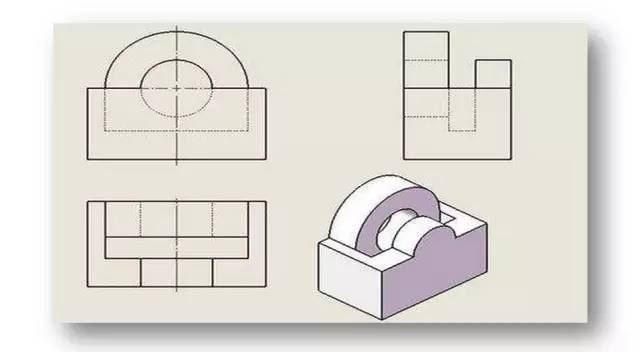 大學(xué)時(shí)期,我學(xué)過一門叫做《工程圖學(xué)》的課程。通過以下三個(gè)平面圖,你必須能在大腦中浮現(xiàn)出右下角的立體零件圖。