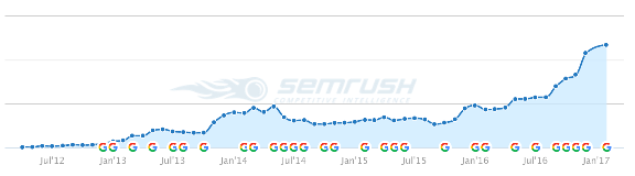 有圖有真相,下面是2012年7月開設(shè)博客到2017年1月的流量增長截圖。