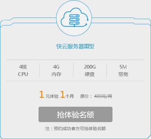 繼快云服務(wù)器產(chǎn)品推出已經(jīng)3年之久,近日快云依托多年云計(jì)算研發(fā)經(jīng)驗(yàn),推出新一代快云服務(wù)器產(chǎn)品,盛大開啟公測。凡新用戶注冊僅需1元即可體驗(yàn)配置高達(dá)4核4G帶寬5M硬盤200G SSD,高性能快云服務(wù)器全新上云體驗(yàn)。