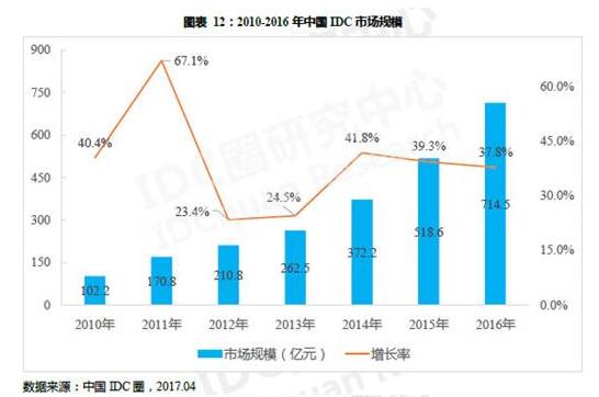 但在搜索引擎中搜索“中國(guó)IDC市場(chǎng)”,卻能找到不少振奮人心的IDC市場(chǎng)分析數(shù)據(jù),“2016年中國(guó)IDC市場(chǎng)繼續(xù)保持高速增長(zhǎng),市場(chǎng)總規(guī)模為714.5億元人民幣,同比增長(zhǎng)37.8%”,“2017年中國(guó)IDC市場(chǎng)規(guī)模將超900億元”,“2019年我國(guó)IDC市場(chǎng)規(guī)模將達(dá)1900億元”,等等。然而,動(dòng)輒上百億規(guī)模的行業(yè),對(duì)于身在其中的中小IDC商實(shí)則不容樂(lè)觀。