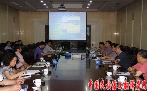 翻譯局局長阿力木沙比提,副局長李萬瑛、金英鎬,及各處室主要負(fù)責(zé)同志20余人參加會議。
