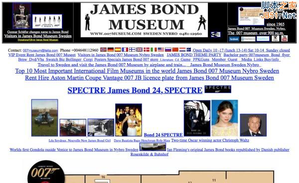 沒錯,就是世界上最最知名最最酷炫的間諜 007 詹姆斯·邦德!這里有場館地址、參觀指南、展出排期,還貼心地擺了很多劇照、道具、手稿、采訪……只是,一片混亂……嗯,這是出產(chǎn)了宜家的瑞典人做的。想象一下,邦德邋里邋遢不刮胡子吧唧著快餐一邊自言自語的形象吧,估計和這官網(wǎng)的風(fēng)格很搭。