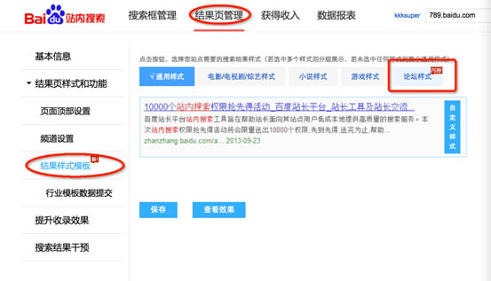 為了更好適配社區(qū)論壇類網(wǎng)站,為用戶帶來更佳瀏覽體驗。論壇樣式可以最大程度保證百度站內(nèi)搜索對論壇內(nèi)容的完整收錄;搜索結(jié)果頁可顯示帖子的出處、作者、時間、評論和回復數(shù)量等標簽;篩選維度新增按板塊篩選功能,更方便用戶精準找到所需內(nèi)容;還可通過搜索用戶名查詢該用戶所發(fā)內(nèi)容;以百度先進的搜索技術(shù)作為后盾,服務穩(wěn)定,對于搜索字數(shù)和次數(shù)沒有任何限制;特別指出的是,使用百度站長平臺Discuz!結(jié)構(gòu)化數(shù)據(jù)插件的網(wǎng)站無需再次提交數(shù)據(jù),可直接同步至站內(nèi)搜索。http://zn.baidu.com/cse/wiki/help?wid=7aid=114