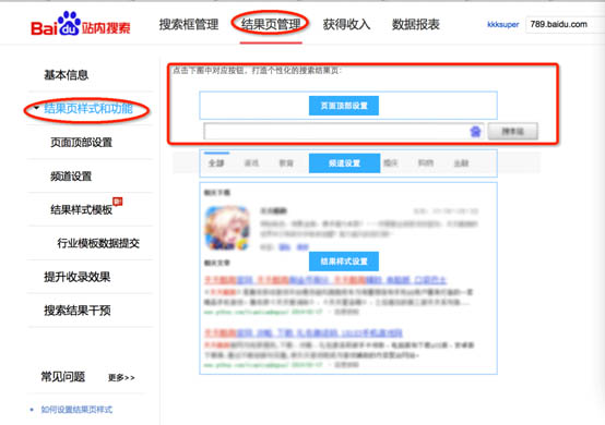 可以滿足了諸多站點在個性化設(shè)置方面的需求。此前時常有網(wǎng)站詬病百度站內(nèi)搜索的的搜索框結(jié)果頁樣式單一,與網(wǎng)站整體設(shè)計風格不匹配。此次全新推出頁面頂部自定義功能,網(wǎng)站可以根據(jù)自身的配色、排版對搜索框進行配置,嵌入自有導航條等,實現(xiàn)與網(wǎng)站的和諧統(tǒng)一。