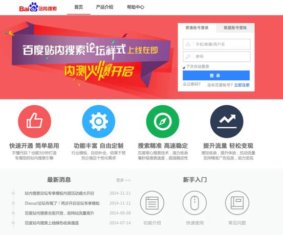 百度站內(nèi)搜索團隊將以新首頁為契機,結(jié)合廣大站長需求,不斷錘煉鍛造產(chǎn)品,為網(wǎng)站打造愈加強大和完美的屬于自己的站內(nèi)搜索引擎。