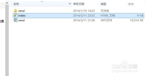 7、修改背景音樂,找到renxi.mp3,刪除,挑一首你喜歡的MP3,再重命名為renxi即可。例如,我把謝霆鋒—你微笑時好美當作背景音樂。小編提醒:文件不要太大,加載起來很久。