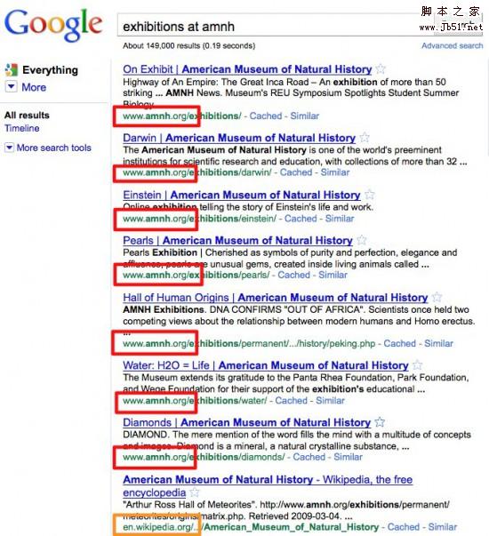 另外,在Google香港搜索“exhibitions at amnh”的結(jié)果頁面還依然符合Google以前的理念,可能這一變化還沒部署到全球。