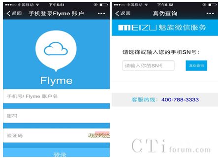 當(dāng)然,“魅妹”除了提供人性化交流這個(gè)最大的特色外,其它手機(jī)類客服常用的功能她都具備,點(diǎn)擊“自助服務(wù)”進(jìn)入“綁定Flyme賬號(hào)”界面,即可方便的查詢賬戶下的訂單、維修等所有信息。除此之外,每個(gè)魅族手機(jī)都有相應(yīng)的SN號(hào),為了辨別真?zhèn)?,只需進(jìn)入“真?zhèn)尾樵?rdquo;功能,將號(hào)碼輸入其中,就可以在購(gòu)買手機(jī)時(shí)做到“火眼金睛”,從此,“媽媽再也不用擔(dān)心我上當(dāng)受騙了”。