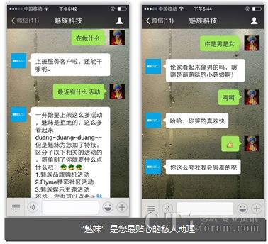 關(guān)注“魅族科技”官方微信,進(jìn)入微信界面后,用戶可以通過(guò)文字和語(yǔ)音兩種方式與“魅妹”進(jìn)行溝通,所有與魅族產(chǎn)品和服務(wù)相關(guān)的問(wèn)題,“魅妹”都能做到對(duì)答如流。