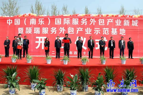 4月10日,南樂(lè)縣隆重舉行中國(guó)(南樂(lè))國(guó)際服務(wù)外包產(chǎn)業(yè)新城暨頡瑞服務(wù)外包產(chǎn)業(yè)示范基地開工儀式、中國(guó)(南樂(lè))國(guó)際服務(wù)外包產(chǎn)業(yè)新城奠基儀式。市委常委、統(tǒng)戰(zhàn)部長(zhǎng)賈祖貧、市人大常委會(huì)副主任鄒東波、副市長(zhǎng)徐慧前、市政協(xié)副主席、縣委書記黃守璽,縣領(lǐng)導(dǎo)邵華、孫文標(biāo)、張耀華、黃澤嶺、李正、田建引、曹擁軍等,中盈集團(tuán)董事長(zhǎng)張津化、中盈集團(tuán)總裁余忠林,原浙江嘉興科創(chuàng)中心主任袁富有出席開工儀式??h領(lǐng)導(dǎo)田曉煒、張自欽、李桂林,中盈集團(tuán)董事長(zhǎng)張津化、中盈集團(tuán)總裁余忠林,原浙江嘉興科創(chuàng)中心主任袁富有出席奠基儀式。
