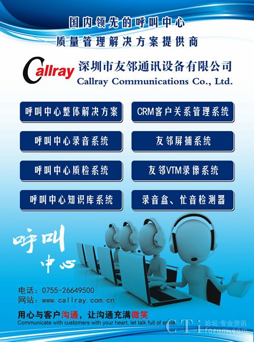 經(jīng)過多年的市場歷練,友鄰通訊在與國際著名品牌同場競技的過程中不斷成長壯大。無論是產(chǎn)品質(zhì)量還是售后服務,都已躋身行業(yè)先進品牌的行列,并得到了銀行、保險、航空、基金、證券等一大批高端行業(yè)客戶的認可和好評。目前,Callray(友鄰)的標識,是質(zhì)量和信任的象征,已成為公司市場競爭中一筆寶貴的無形資產(chǎn)。
