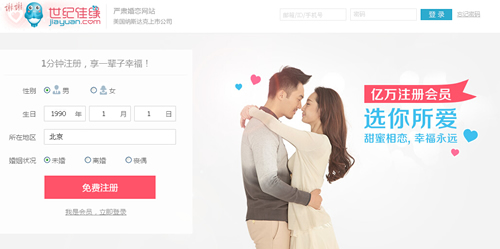 上?;ㄇ湫畔⒖萍加邢薰荆?ldquo;世紀佳緣”)(納斯達克代碼:DATE)運營中國最大的在線婚戀交友平臺,通過互聯(lián)網(wǎng)、無線平臺和線下活動為中國大陸、香港、澳門、臺灣及世界其它國家和地區(qū)的單身人士提供嚴肅婚戀交友服務。