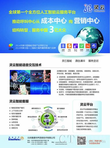 北京捷通華聲語音技術(shù)有限公司將參加10月28-30日在中國北京舉行的“2014中國(第十屆)呼叫中心行業(yè)峰會暨亞太客戶中心協(xié)會領(lǐng)袖聯(lián)盟博覽”。(http://www.ctiforum.com/expo/2014/award2014/index.htm>)。