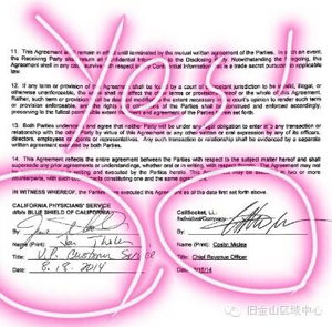 2014年8月18日,Blue Shield of California與CallSocket LLC(呼叫中心總公司)簽訂了意向合作合同,并將于2014年底與CallSocket II(呼叫中心二期)簽訂正式合同。