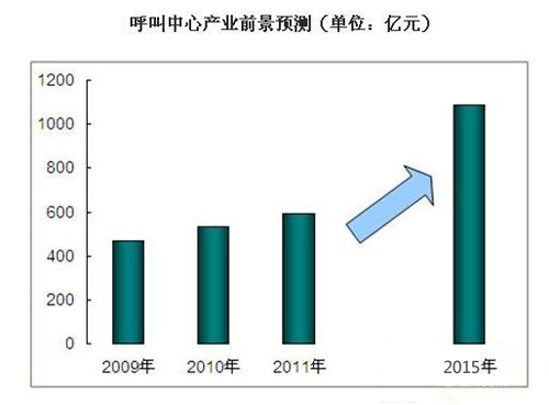整體上看,中國的呼叫中心產(chǎn)業(yè)正處于從起步階段向成熟階段邁進的過程中,不僅發(fā)展速度較快,業(yè)務(wù)范圍也在不斷延伸和升級。前瞻預(yù)計,至2015年中國呼叫中心產(chǎn)業(yè)發(fā)展前景良好,截止到2015年年底,產(chǎn)業(yè)累計投資規(guī)模將超過1000億元,年復(fù)合增長率為11%左右;總坐席規(guī)模將達到96.11萬個,萬人坐席擁有數(shù)約為7個。