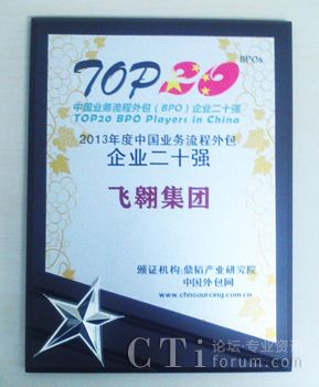 CTI論壇(ctiforum)4月3日消息(記者 曲寧):近日,“2013年中國業(yè)務流程外包企業(yè)二十強評選”(簡稱BPO TOP20)榜單在由鼎韜產(chǎn)業(yè)研究院與中國外包網(wǎng)傾力聯(lián)合打造的服務外包行業(yè)盛會--“2014領(lǐng)軍者年會”上隆重揭曉。飛翱集團(http://weibo.com/800teleservices)繼2010年、2012年后第三次蟬聯(lián)該獎項,在飛翱BPO業(yè)務十七年之際再獲業(yè)界殊榮與肯定。