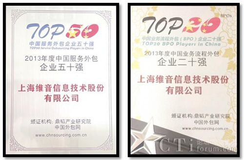 2014領(lǐng)軍者年會(huì)在天津?yàn)I海新區(qū)盛大召開,600余位來自服務(wù)外包、互聯(lián)網(wǎng)、金融、大數(shù)據(jù)、云計(jì)算等ICT產(chǎn)業(yè)專業(yè)領(lǐng)域的海內(nèi)外知名專家學(xué)者齊聚大會(huì)現(xiàn)場(chǎng)。維音作為服務(wù)外包領(lǐng)域內(nèi)提供呼叫中心業(yè)務(wù)的核心主力軍,憑借專業(yè)的呼叫中心外包解決方案及成功經(jīng)驗(yàn),入圍“2013年中國服務(wù)外包企業(yè)五十強(qiáng)”及“2013年中國業(yè)務(wù)流程外包企業(yè)二十強(qiáng)”。