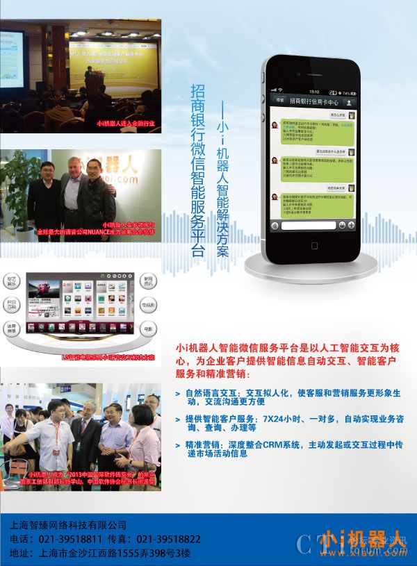 小i機器人的創(chuàng)新產(chǎn)品及其服務(wù)體系使得智能機器人在市場上得到了廣泛應(yīng)用,業(yè)務(wù)涉及通信、金融、政府、電子商務(wù)、智能家電和汽車等行業(yè),在智能人機交互(文本、語音等)的全渠道整合應(yīng)用上領(lǐng)先中國,小i機器人已成為中國智能機器人第一品牌。