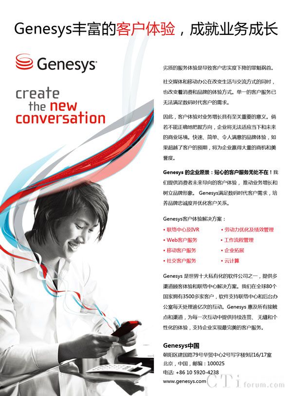 Genesys大中華區(qū)業(yè)務(wù)發(fā)展總監(jiān)黃金鵬將出席2014中國呼叫中心及企業(yè)通信大會,并發(fā)表名為《Genesys釋放客戶體驗,創(chuàng)造價值》的主題演講。