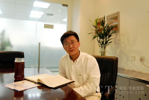 圖:捷通華聲董事長張連毅先生在辦公室接受CTI論壇記者采訪